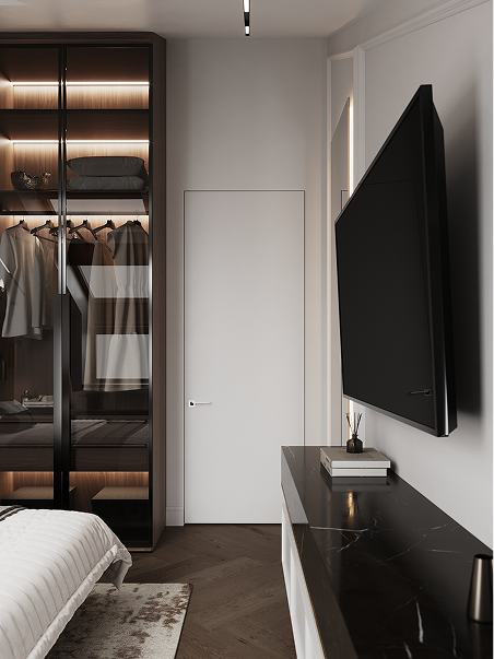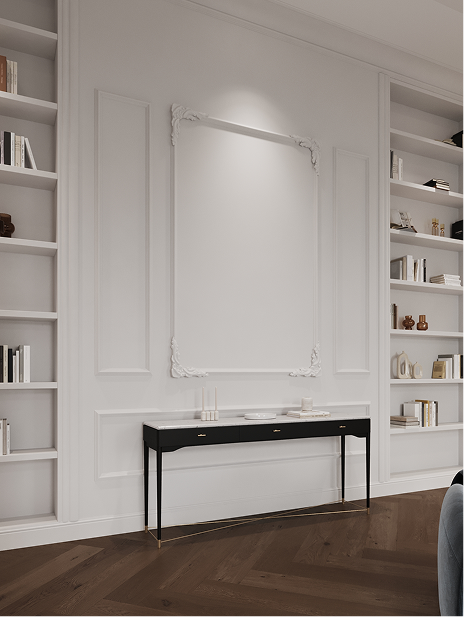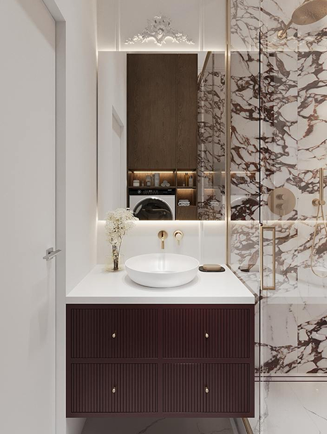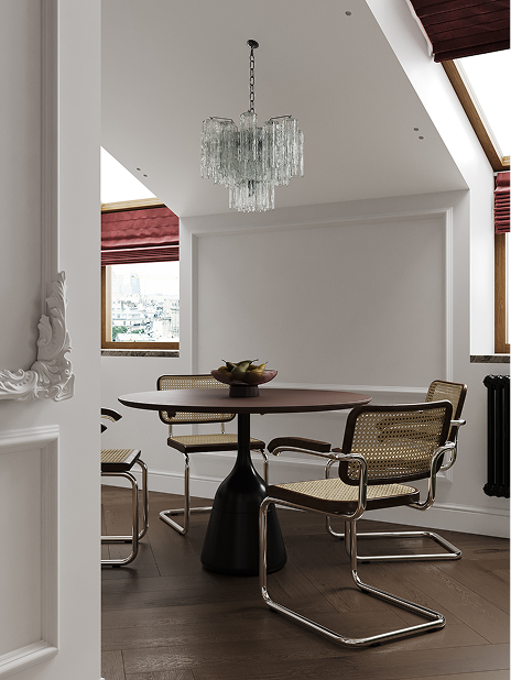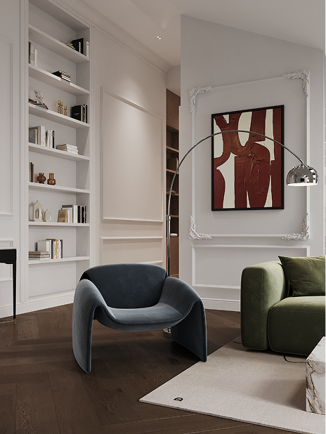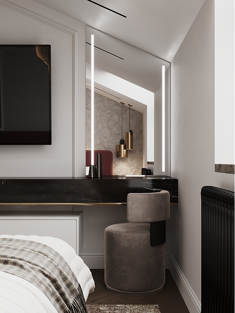 и роскошь, а натуральные материалы подчеркивают статус и изысканность пространства. Интерьер выглядит современно, но с отсылками к вечной элегантности.
